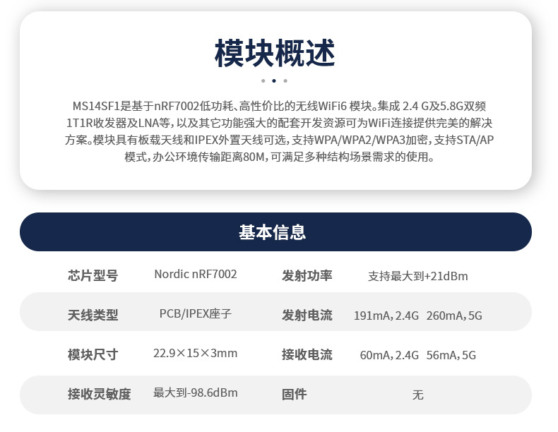 MinewSemi蓝牙WiFi6模块MS14SF1低功耗小尺寸集成2.4G 5G nRF7002