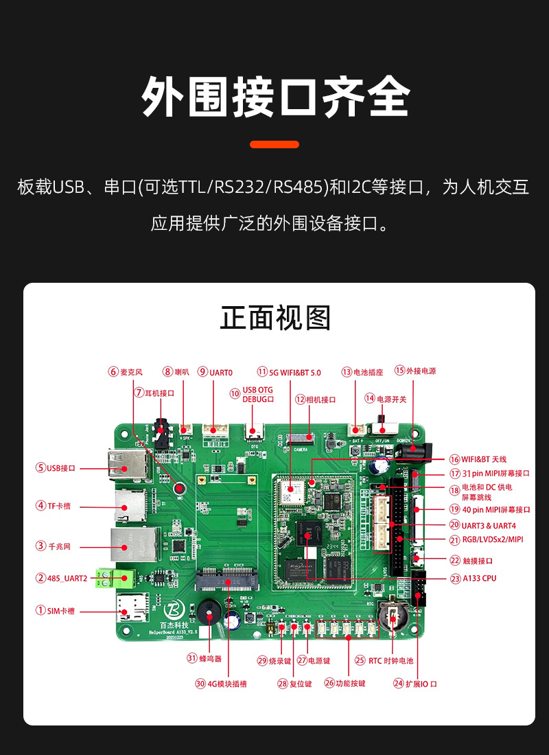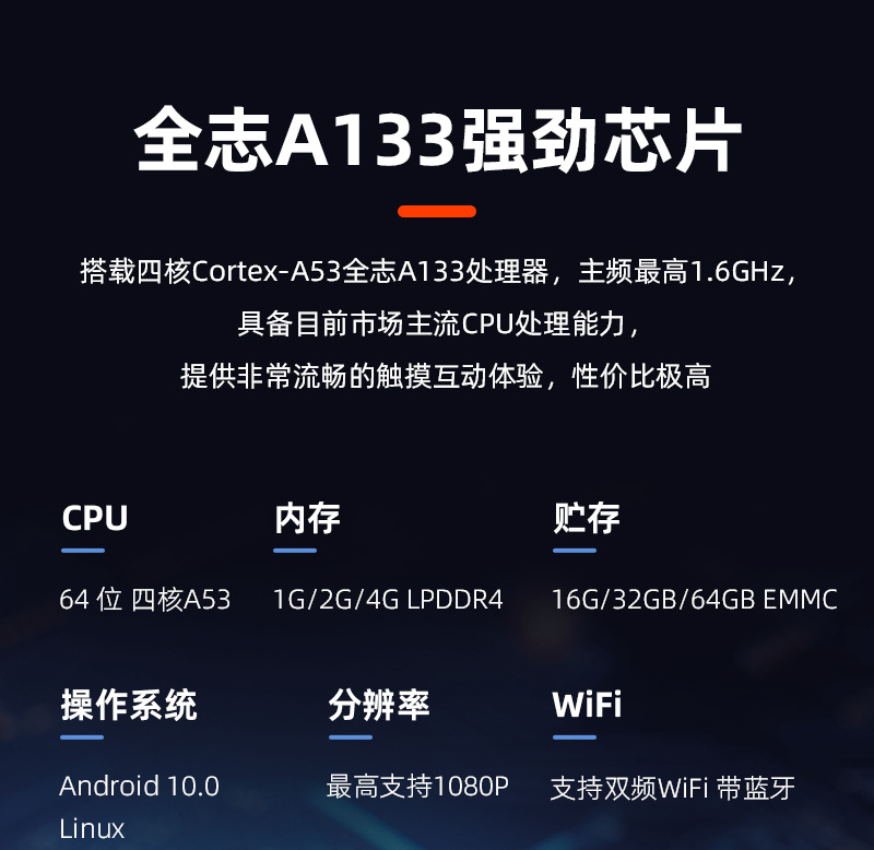 全志A133安卓 Ubuntu开发板64位4核A53 主频1.2GHz 双频WI FI/蓝牙