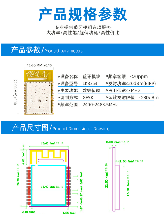 BQB认证LK8353蓝牙模块支持PAwR蓝牙5.4便携式医疗数字蓝牙模组