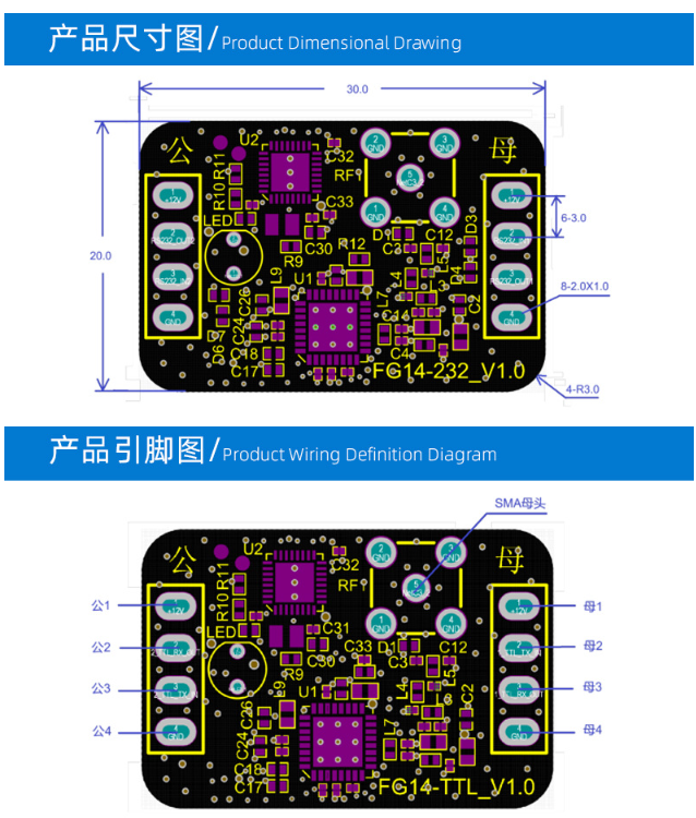无线串口透传数据模块方案SUB-1G适配器蓝牙模块低功耗 通信模组