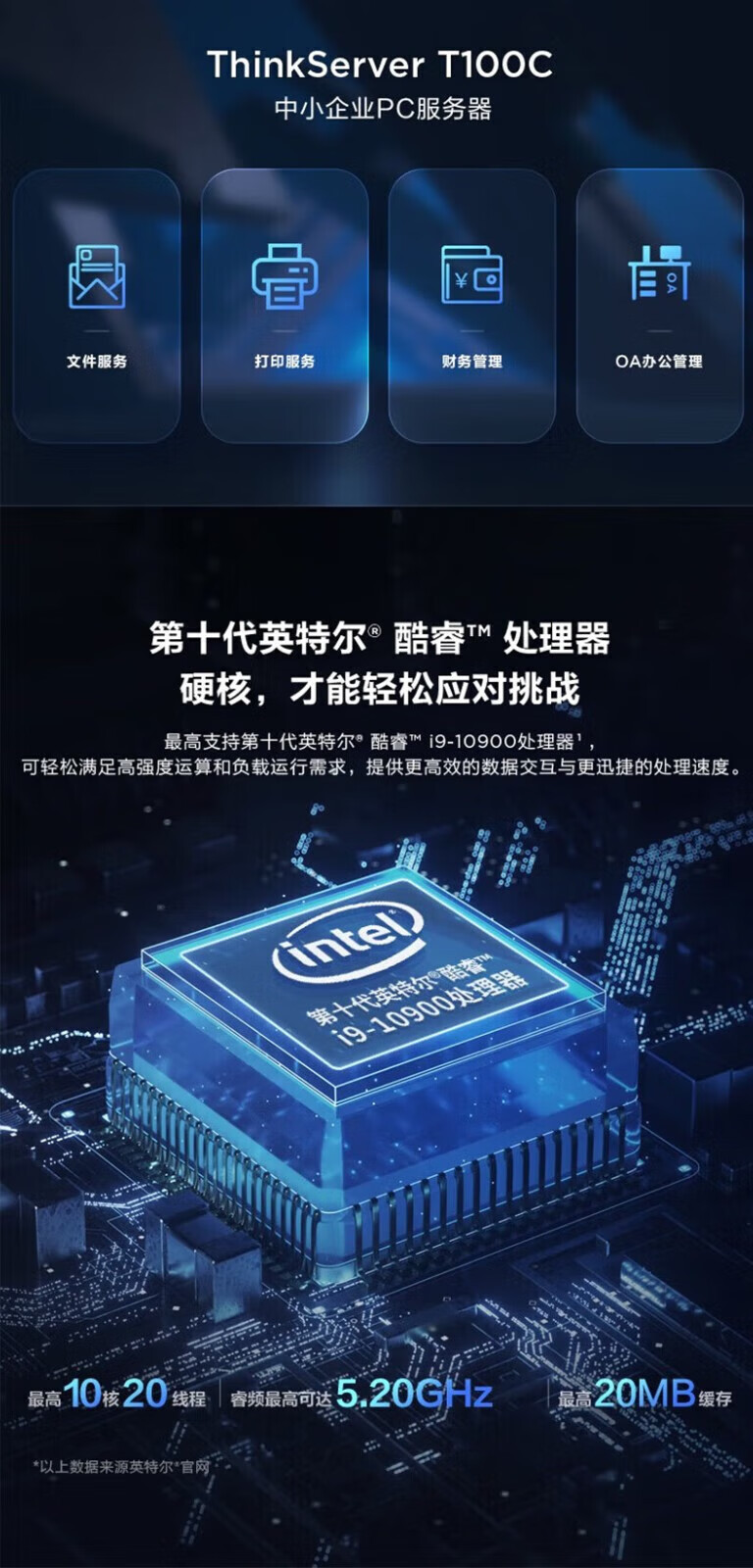 联想ThinkServer T100C 中小型企业PC塔式服务器主机 ERP财务办公