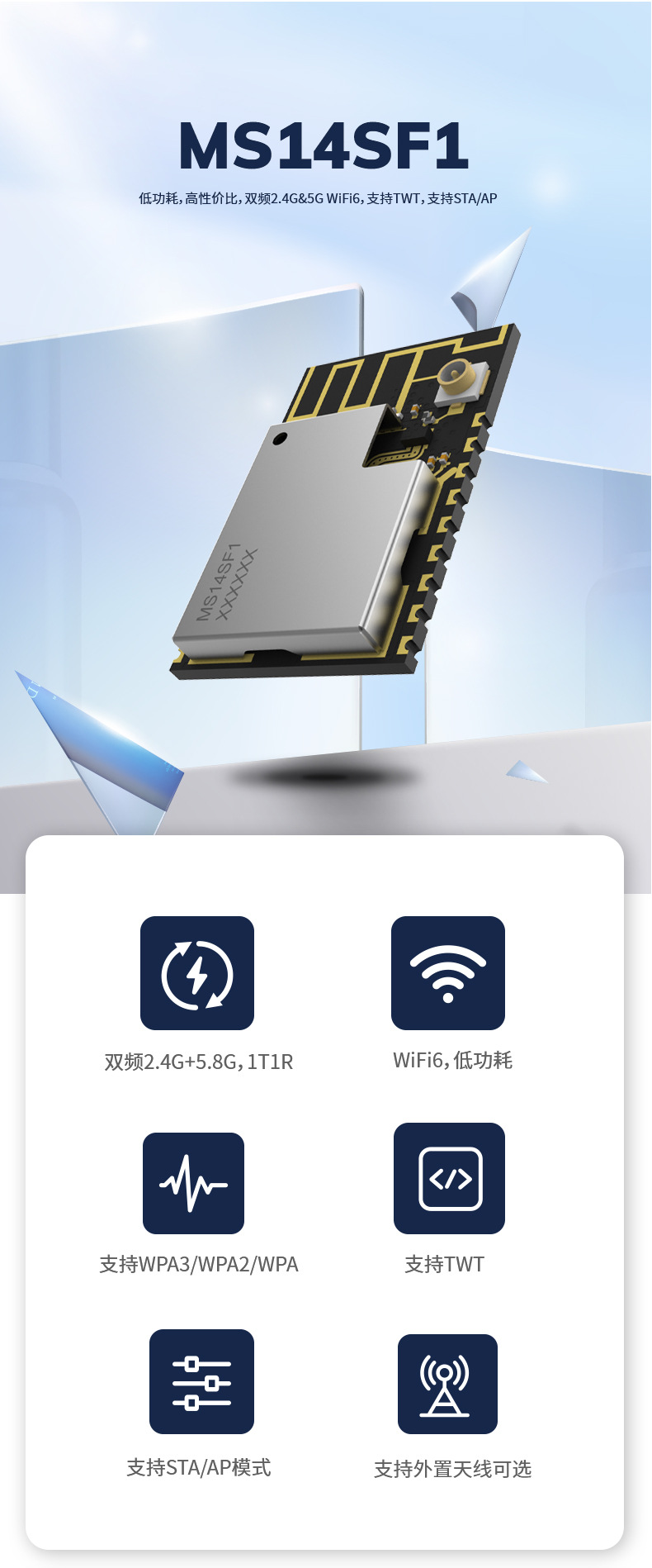 MinewSemi蓝牙WiFi6模块MS14SF1低功耗小尺寸集成2.4G 5G nRF7002