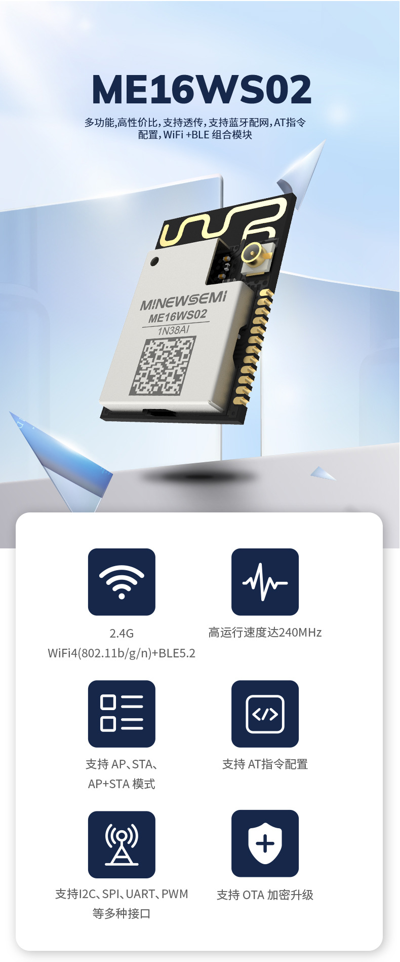 WiFi4+BLE5.2模块ME16WS02高运行速度远距离2.4G 不带DCDC