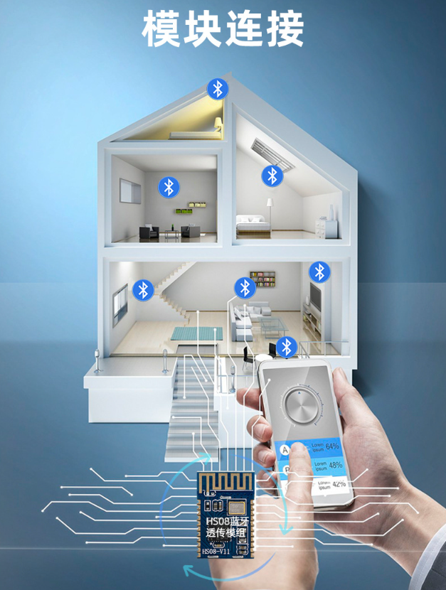 HS08蓝牙透传模组支持低功耗蓝牙5.2小体积无线透 传数据模块