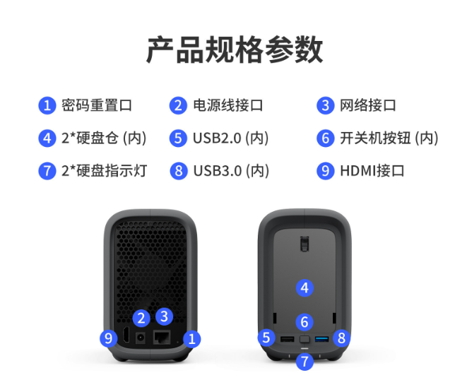 极空间私有云Z2S网络存储服务器四核2盘位NAS家庭个人云网盘家用