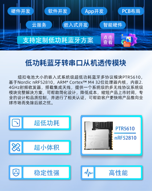 蓝牙BLE从机透传蓝牙模块PTR5610低功耗无线传输蓝牙4.2/5.0模块
